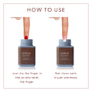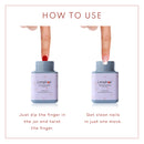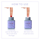 Dip your finger in the jar which is provided with an in-built sponge. Twist the finger to strip away all the traces of nail polish stains. Enjoy the fresh fragrance!